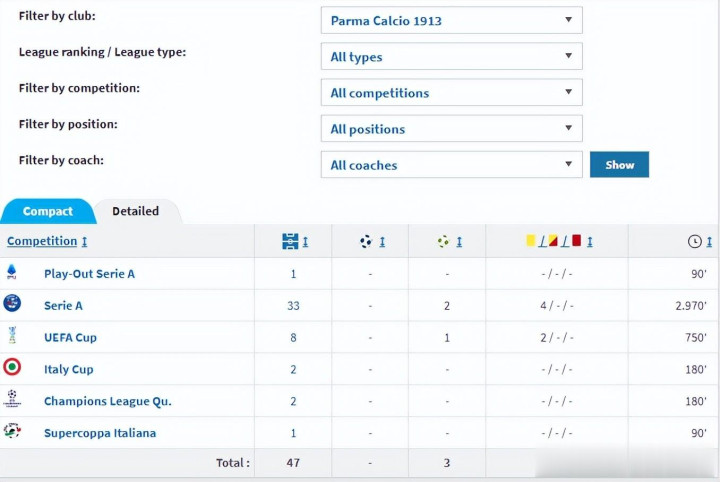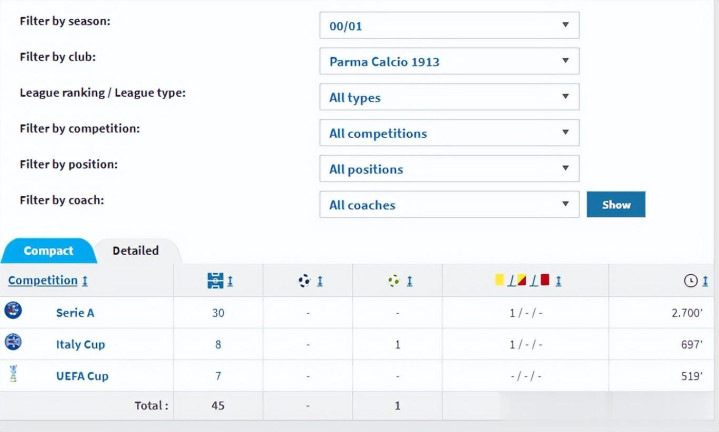 最终意甲新贵帕尔马成为了图拉姆的新东家,法国铁卫和他繁密队友们一齐开启了意甲征程。在帕尔马,图拉姆、卡纳瓦罗和布冯构成了令东谈主恐慌的后防地。96/97赛季,图拉姆完成了惊东谈主的全勤记录,匡助球队取得联赛亚军。炸裂的透露让图拉姆取得了97年法国足球先生的荣誉。到了97/98赛季,诚然没能再完周到勤,却依旧有着各项赛事46次出场的恐怖出场率。