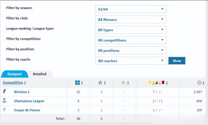92/93赛季,年青的图拉姆透顶锁定了摩纳哥主力的位置,38轮法甲联赛他尽然37轮全部踢满。只不外此时的法甲赛场照旧马赛的寰宇,摩纳哥最终只取得法甲季军。
