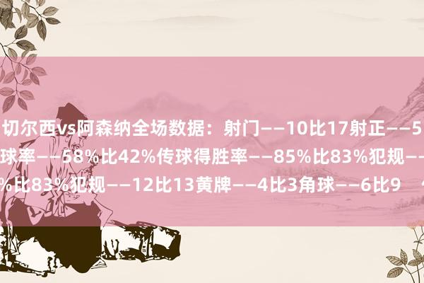 1月15日讯 联赛杯半决赛首回合比赛,阿森纳客场3-2打败切尔西。 切尔西vs阿森纳全场数据: 射门——10比17 射正——5比6 进球契机——1比3 控球率——58%比42% 传球得胜率——85%比83% 犯规——12比13 黄牌——4比3 角球——6比9体育集锦......