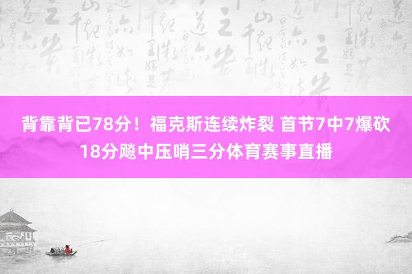 背靠背已78分!福克斯连续炸裂 首节7中7爆砍18分飚中压哨三分体育赛事直播