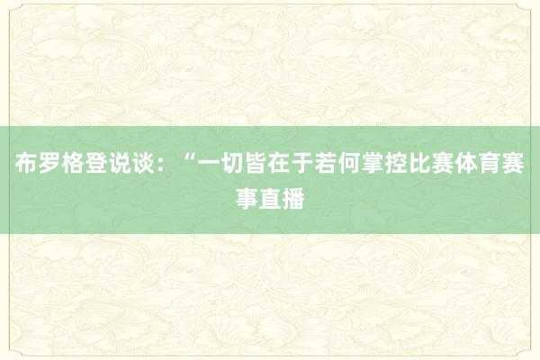 你的位置:联赛买球网-篮球买球网-BBIN体育联赛-压球站-NBA体球网-美职篮球盘网-天天体育 > 体育赛事直播 > 布罗格登说谈:“一切皆在于若何掌控比赛体育赛事直播